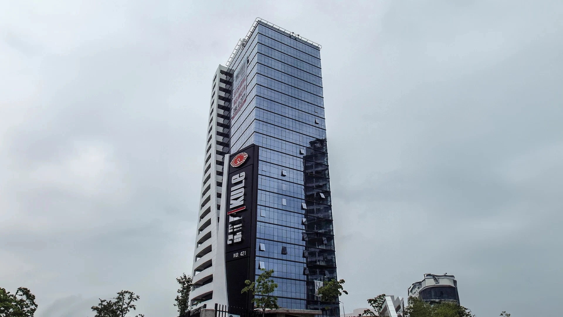 Kaplama malzemesi olarak şeffaf cam kullanan ve cam panelleri bina yapısına tutturmak için paslanmaz...